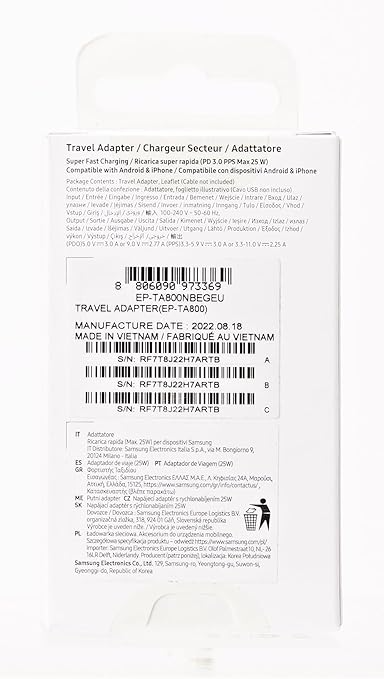 Use a Samsung USB Type-C cable to optimize charging speed – Adaptive charging – Enjoy adaptive charging according to your device’s capabilities – If the ultra-fast charger delivers the maximum power of 25W to compatible devices, it can also adapt to the capabilities of other models