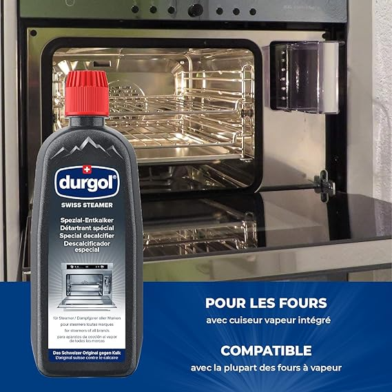 durgol Swiss Steamer Special Descaler. Does your oven offer poor cooking? Have you thought about descaling your oven? With Durgol swiss steamer, descaling your machine becomes easier. Use a bottle (500 ml) of the descaler to clean your oven, follow the instructions indicated and finally enjoy your dishes with exquisite quality. Product description: Suitable for steamers, steam heaters, boiler evaporators and water tanks. Solves limescale without additional laying time. A gentle and protective formula. Hygienic cleanliness: leaves no residue. in the oven. ffensive for food.Inodoredurgol – The Swiss original against limestone.Switzerland, reliable and leading in quality – it’s durgol. Since 1951 Durgol has invented new anti-limescale products with high standards of efficiency, rigor and environmental compatibility. Today, with its rich range of specific descalers and cleaning products, the brand is synonymous with effective fight against limescale. Available in more than 40 countries, Durgol has always remained true to its roots and develops and produces exclusively in Switzerland.